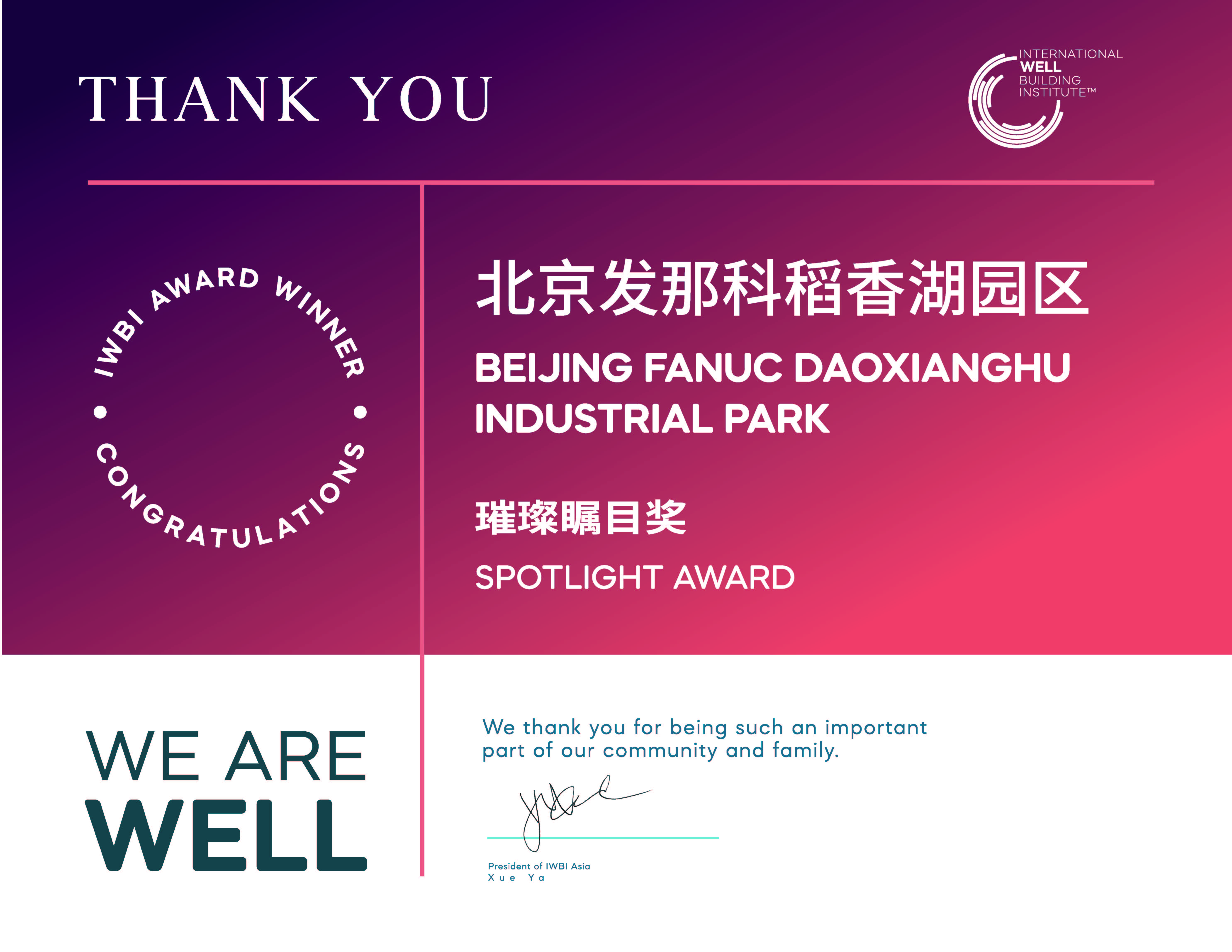 近日,国际WELL建筑研究院(IWBI)亚洲区总裁雪娅一行莅临北京发那科稻香湖园区,代表IWBI为北京发那科颁发2025年度“璀璨瞩目奖”。IWBI亚洲区总裁雪娅表示:“当领导者关注员工福祉时,所有人都会受益。北京发那科稻香湖园区展现出的卓越领导力令人鼓舞,不仅树立了标杆,更通过实际行动证明了健康环境对企业成功的重要性。”